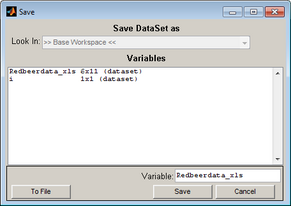 - The Save dialog box opens. The Variable name field is automatically populated with the name of the data item.
