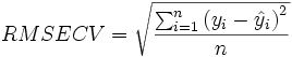 In Analysis GUI, the cross-validation process accompanies the construction of the "full" model, which uses the complete set of loaded data. Consequently, once the Analysis is executed, cross-validation results and plots will be made available along with results and plots for the "full" model. For example, the Model Results window in Analysis will include a Root Mean Square Error of Cross-Validation (RMSECV) value along with the Root Mean Square Error of Calibration (RMSEC) value. The RMSECV is defined as