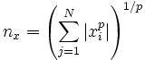 where p is normtype. The normalized 1 by N vector xn is given by x/nx.
